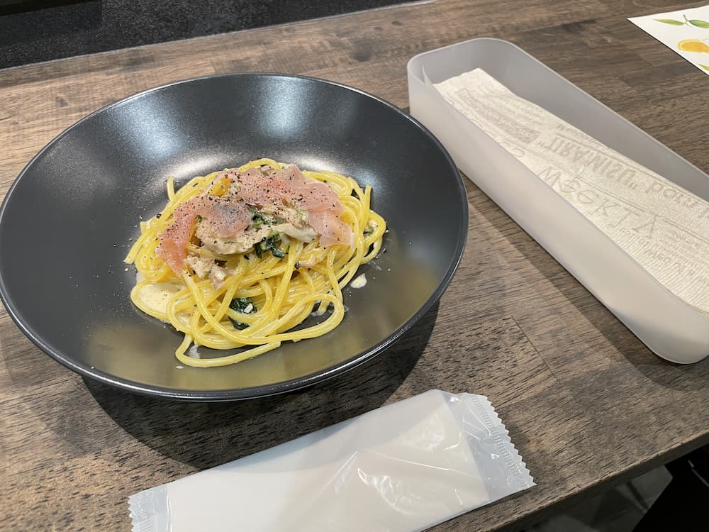 中の人お気に入りのパスタです。休憩時間に美味しくいただきました。
