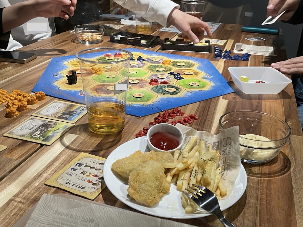 休憩中に注文したフードを食べながらカタンをプレイすることもできます